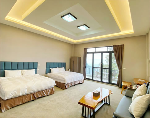 結合自然景觀與現代舒適, 空間規劃包含1樓4人房、2樓2人房, 以及3樓的4人房與6人合室, 適合情侶、家庭或團體入住; 戶外另設有共用遮雨棚, 可供旅客安心烹飪、自在用餐。